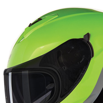 - Visiera ultralarga: rivestimento trasparente e antigraffio su entrambi i lati, con meccanismo di inclinazione per estendere l'area coperta dal Pinlock®, limitando il rischio di appannamento all'interno del casco e l'apertura accidentale della visiera.
